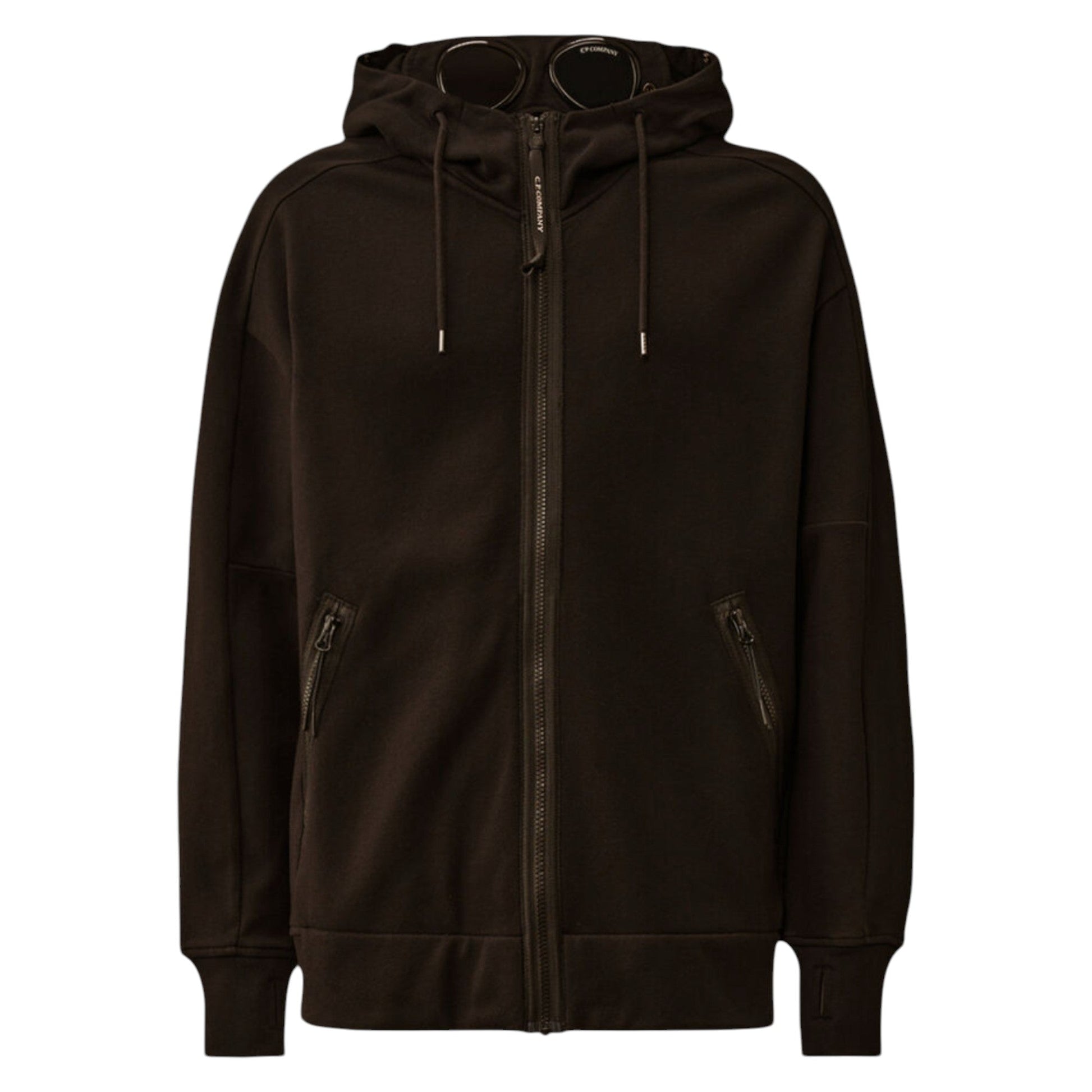 C.P. Company Diagonal Rasied Fleece Zip Up Goggle Black Hoodie