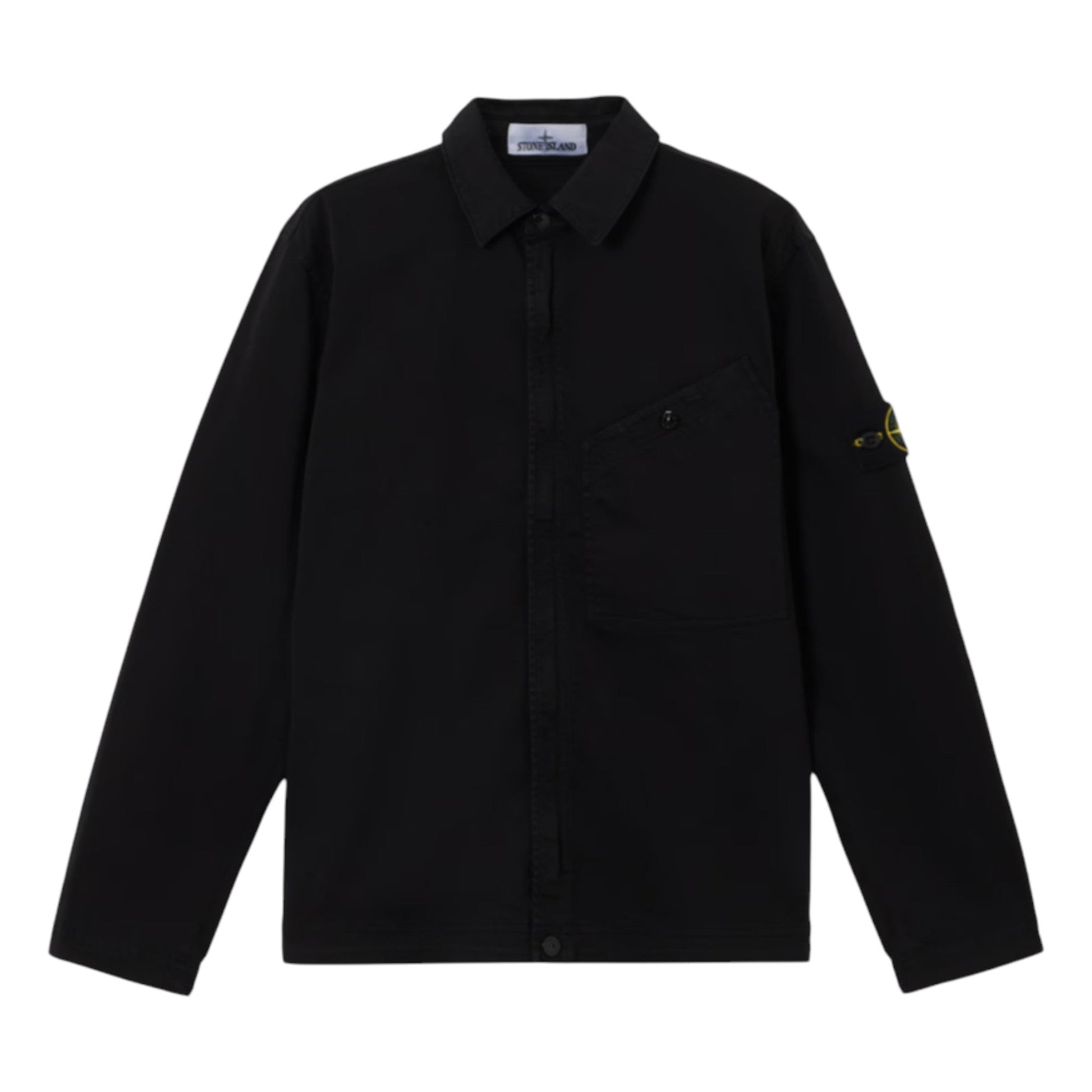 Stone Island Stretch Organic Cotton Satin Black Overshirt